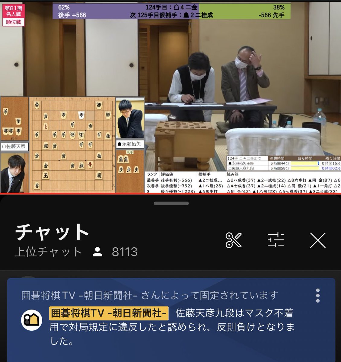 これは酷い 将棋a級順位戦マスク不着用で反則負け 佐藤天彦九段 Youtube